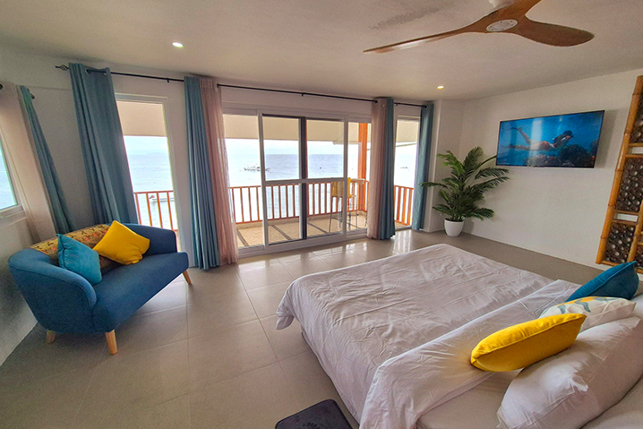 The Ocean Terrace Room is located just by the waterfront with a fantastic view over the water from inside the room and from the waterfront terrace. The room is close to both dive center, the swimming pool and the restaurant. Inside the room you have all the amenities you will need for a comfortable stay, including smart TV and free high speed wifi.