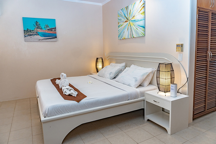 The Super de Luxe Rooms is our new rooms and are both large and comfortable. They are located in the center of the resort with the balcony facing the walking path/garden. The rooms are located 25 meters from the pool and 50 meters to the ocean.